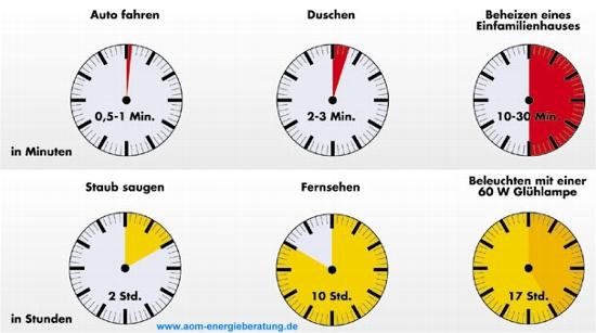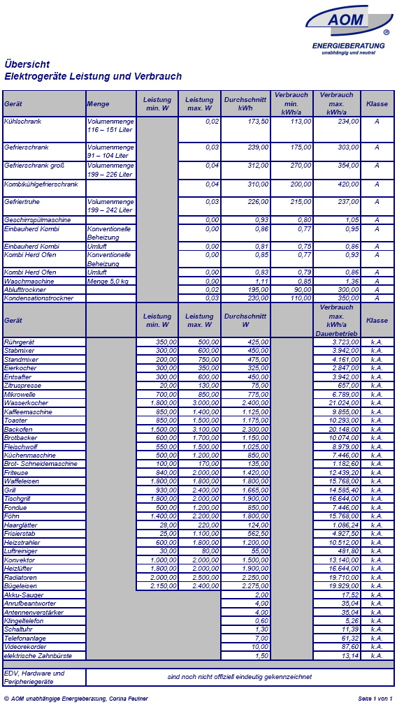 Und eine Übersicht, wie lang es dauert bis 1 kWh verbraucht ist: